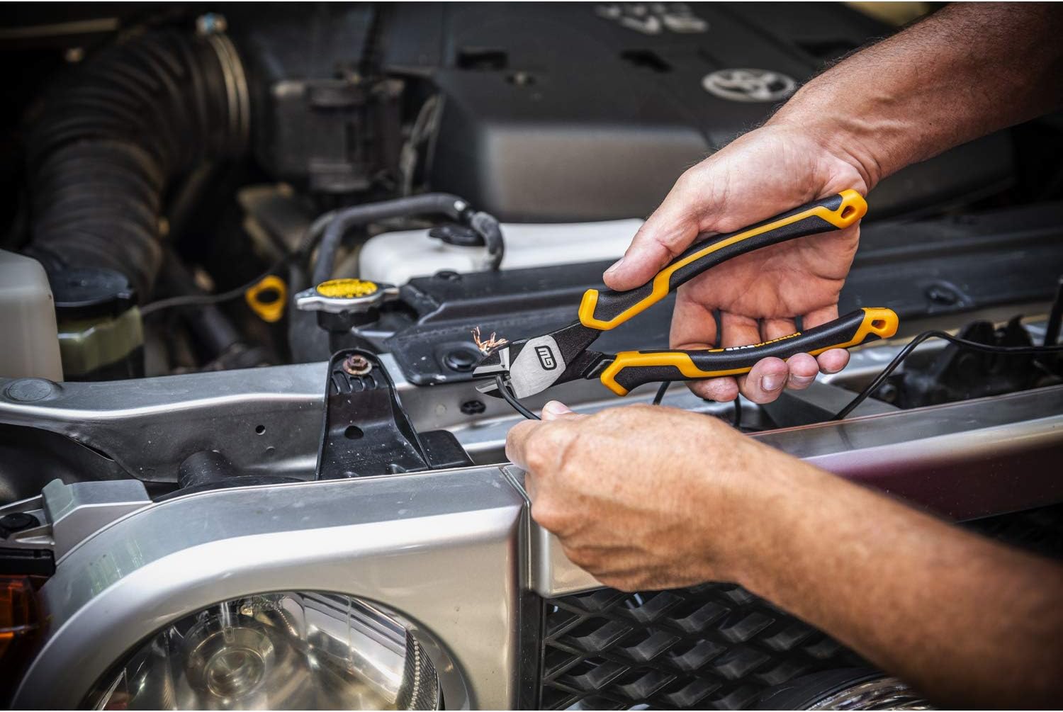 The Gearwrench 82183C Pitbull Dual Material Diagonal Cutting Pliers are designed for industrial and automotive use. These pliers feature a high leverage joint design, providing up to 35% greater cutting power. The laser-hardened cutting edges ensure clean cuts and maintain sharpness 50% longer.