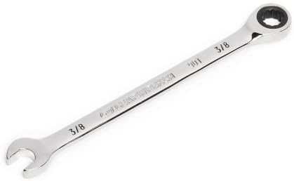 The Gearwrench 86943 3/8 4 Degree Swing Arc 12 Point Ratcheting Combination Wrench is designed for tight spaces. It has a 90-tooth ratcheting box end that allows for a swing arc of just 4 degrees. This feature makes it possible to turn fasteners in confined areas. The wrench also has an off-corner loading design on the box end to provide a better grip and reduce fastener rounding.