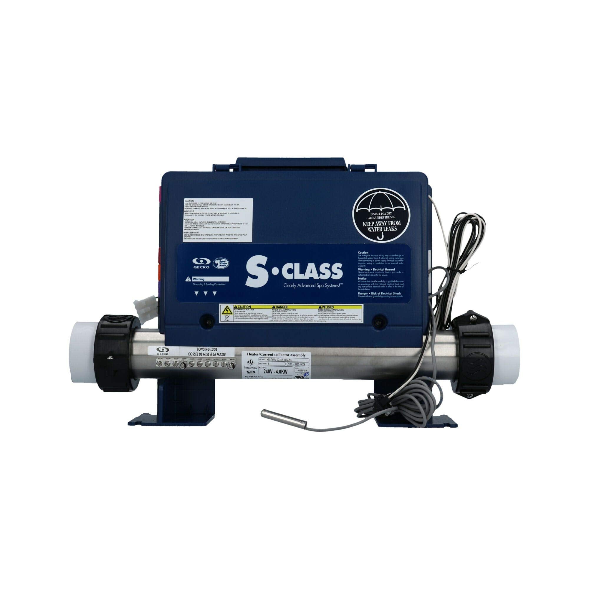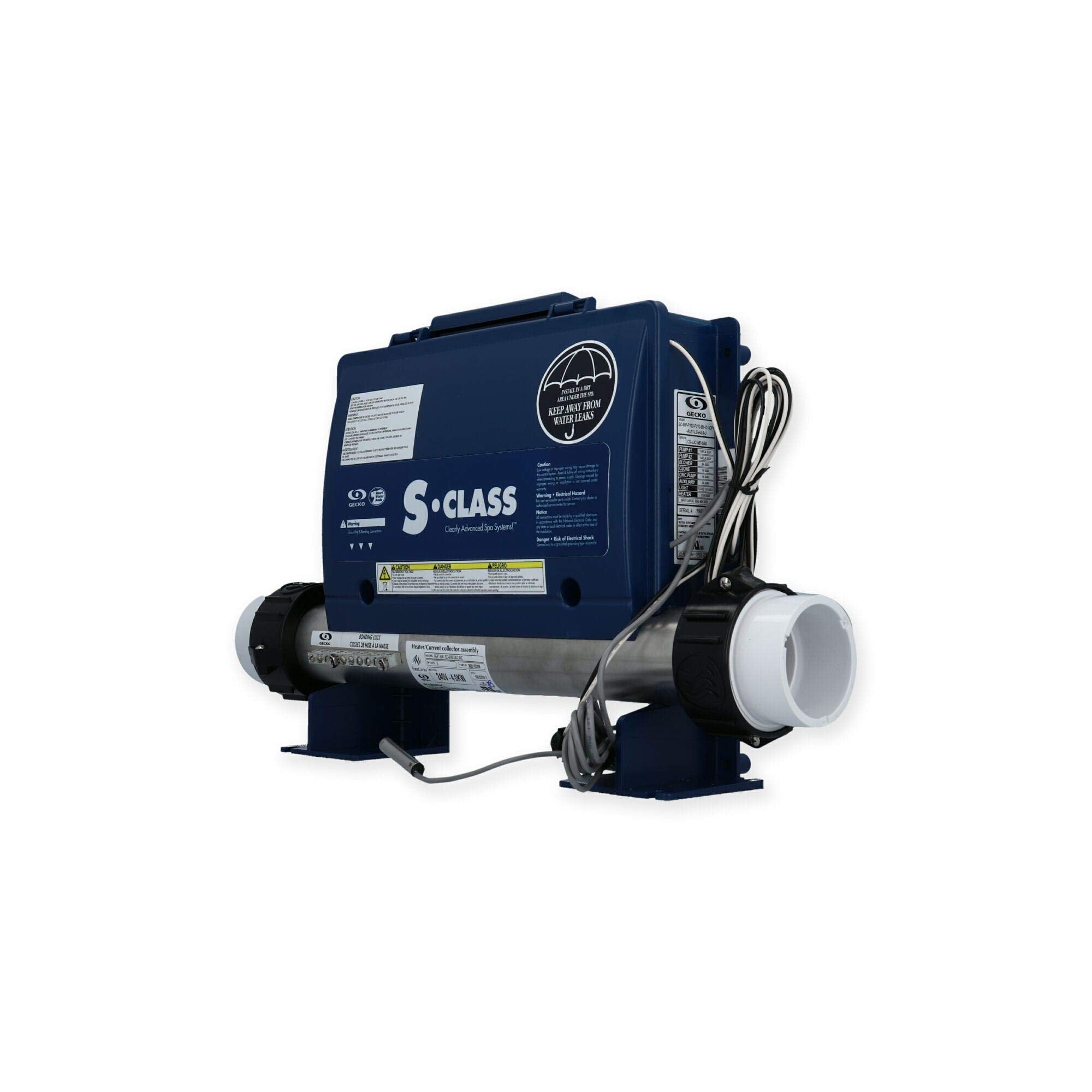 The Gecko S-Class Control System, model number 0202-205160, offers advanced management and control for spa systems, ensuring high performance with consistent reliability. This control system is designed for both 115v and 230v setups, providing versatile power options to meet diverse installation requirements.