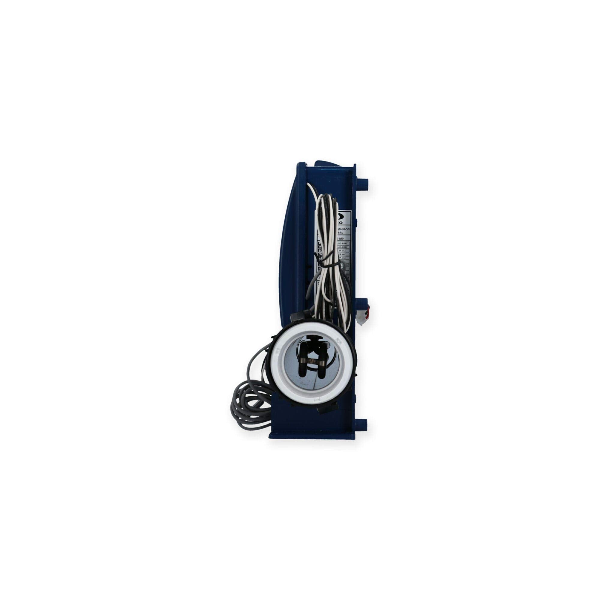 This control system includes a set of Mini JJ-style receptacles, compatible with a variety of spa equipments, such as single-speed or dual-speed pumps, blowers, and light controls. It is specifically crafted for controlling equipment like a 1-speed or 2-speed pump, a blower, and ozone generator, all within a compact design, measuring eleven and a half inches in height, fourteen and a quarter inches in width, and three and three-eighths inches in depth.