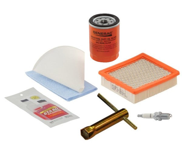 This maintenance kit provides everything needed for effective upkeep of Generac portable generators.