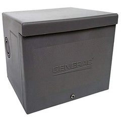 The Generac 6340 is a non-metallic generator power inlet box designed for portable generators up to 7500 watts. This power inlet box features a rain-tight resin construction with a flip lid, ensuring a secure connection while protecting against dirt, insects, and moisture.