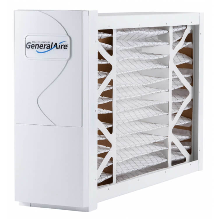 GeneralAire 4500 High Efficiency Media Air Cleaner effectively reduces airborne contaminants. This product is part of the MAC Series and is designed for optimal indoor air quality. The unit uses a cartridge design with opti-fiber media which supports low pressure drop characteristics. It has a minimum average efficiency of 61.8% and is capable of capturing particulates sized from one to three microns. The cabinet includes a ten-year warranty, ensuring durability.