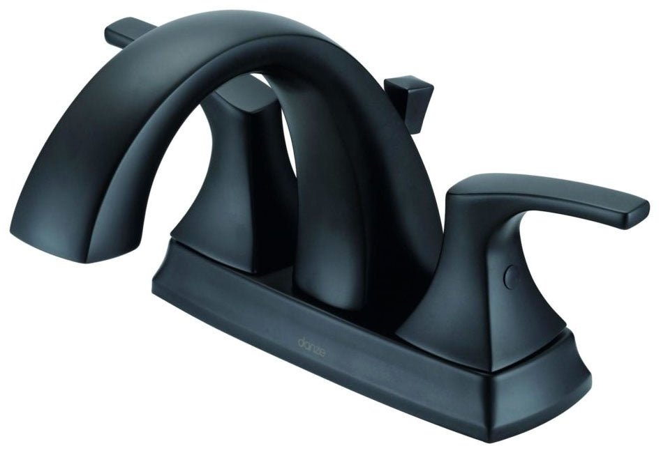 The Gerber Vaughn D307018BS is a centerset lavatory faucet featuring a metal pop-up drain. This faucet is designed for bathroom sinks and has a flow rate of 1.2 gallons per minute. The satin black finish offers a modern look suitable for various bathroom styles.