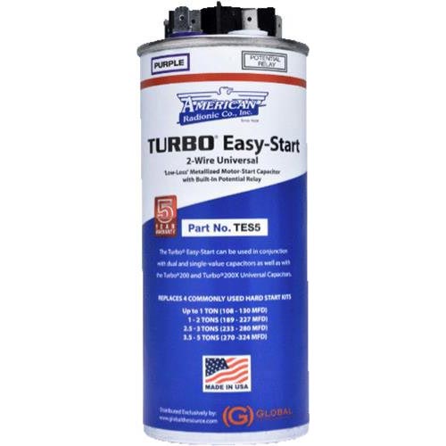 The Global TES5 is a hard-start capacitor designed to enhance the performance of air conditioning and refrigeration compressors. With a maximum voltage rating of three hundred thirty volts, this capacitor is an essential component for reliable compressor operation.