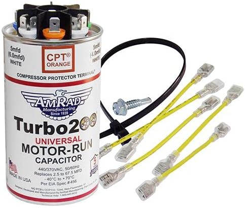 The Global TURBO200 is a universal motor run capacitor suitable for up to two hundred motors. This capacitor operates at a voltage rating of 370/440 volts and supports a microfarad rating of two point five to sixty-seven point five mfd. It is designed for use with various AC motors, making it a versatile choice for professionals in the HVAC and electrical fields.