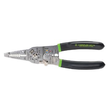 Greenlee 1927-SS is a manual fixed hole wire stripper and cutter designed for stripping, cutting, and crimping wire conductors. This tool works with a range of wire sizes, from eighteen to eight American Wire Gauge (AWG) for solid wire and twenty to ten AWG for stranded wire.