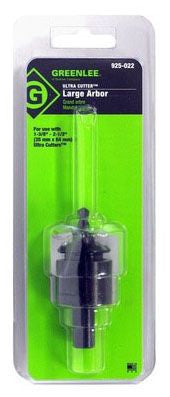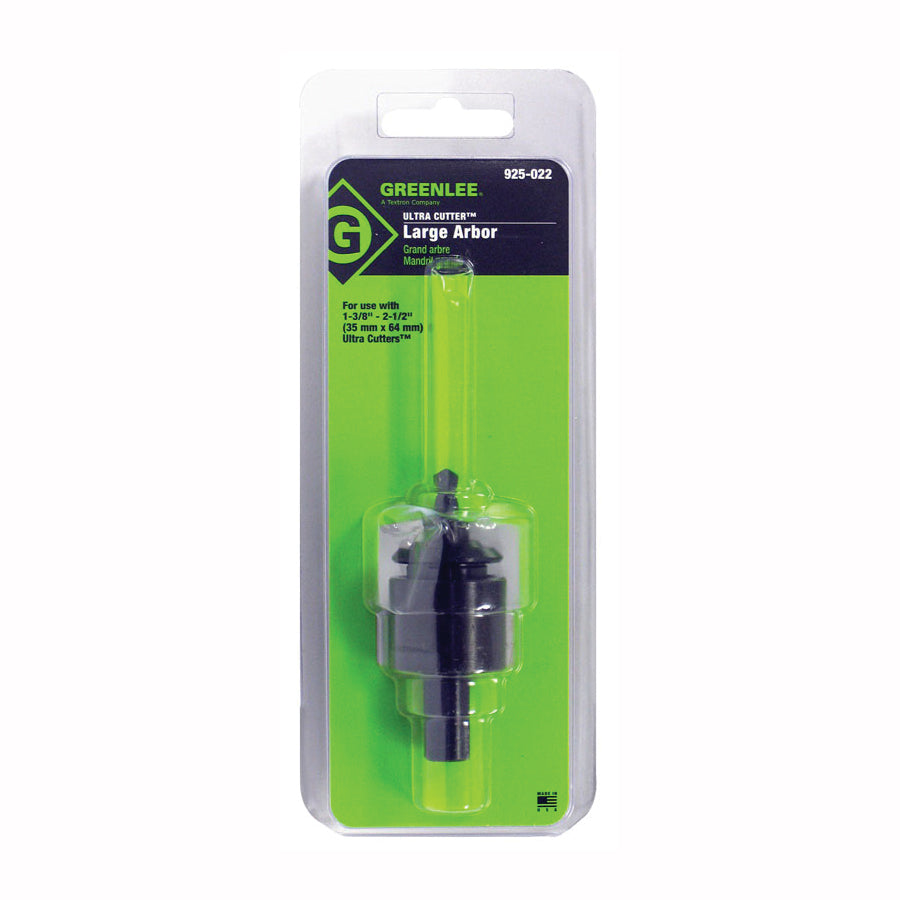 The Greenlee 925-022 is a large hole saw arbor designed for use with cutters ranging from one and three-eighth inches to two and one-half inches. This product features a durable high-speed steel construction and comes with a pilot drill. The arbor has a three-eighth inch size and hex shank for added versatility.