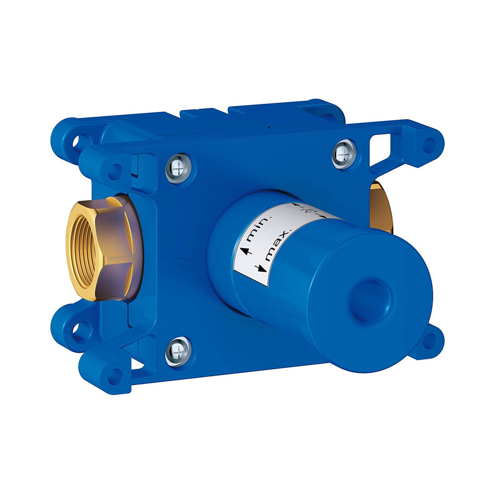 The GROHE 35029000 Rapido C 1/2 in. NPT Pressure Balancing Valve is designed for efficient water management in shower and bathtub systems. This valve integrates with the Grohtherm F system and works with the GrohFlex built-in box. It features a built-in protection cover and is suitable for both masonry and drywall installations.