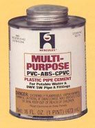 Hercules 60120 Fast Setting Medium Body PVC Cement is a reliable adhesive for joining PVC pipes and fittings. This clear cement comes in a thirty-two ounce container and is suitable for all schedules and classes of ABS pipe and fittings having an interference fit up to eight inches in diameter. The product is designed to set quickly, making it efficient for various plumbing applications.