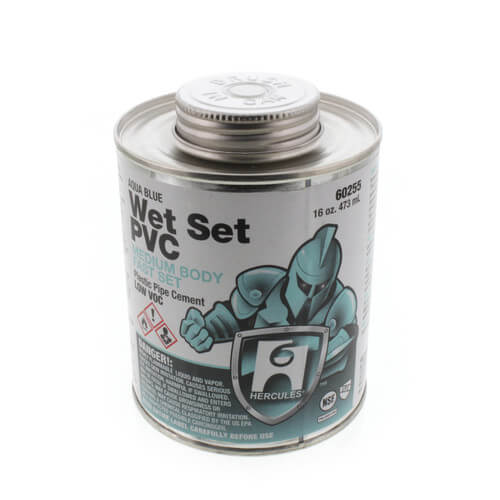 Hercules 60255 is a medium body, fast setting PVC solvent cement. It comes in a sixteen-ounce container and is designed for use with all classes and schedules of PVC pipe and fittings up to eight inches in diameter with an interference fit. Ideal for applications where conditions are wet or require quick pressurization, it is suitable for lawn sprinkler and swimming pool installations.