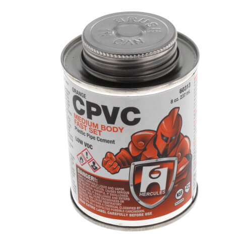 The Hercules 60313 CPVC Solvent Cement is designed for use with all classes and schedules of CPVC pipe and fittings up to eight inches in diameter. This product comes in an eight-ounce container and has a low VOC formulation.