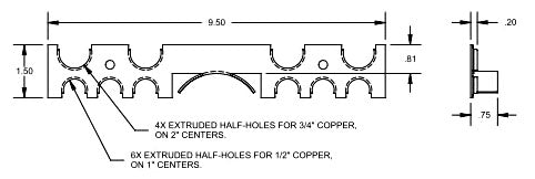 Hole Center Distance: 1 inch for 1/2 inch tubing, 2 inches for 3/4 inch tubing