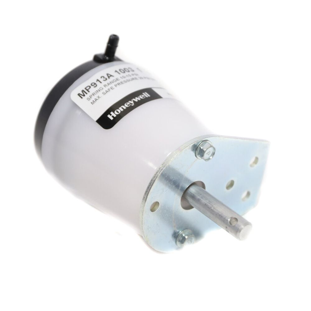 The Honeywell MP913A1003 is a pneumatic actuator designed for variable volume dampers. It operates within a 10 to 15 psi spring range. This device is ideal for controlling small high velocity air valves and variable volume dampers efficiently. The product includes a roll pin and a flat mounting bracket for installation.