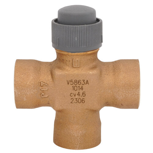 The Honeywell V5863A1014 is a 3/4 NPT brass globe valve designed for precision fluid control. Ideal for use in HVAC systems, this valve ensures reliable operation in regulating hot or chilled water.