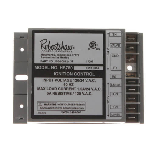 The Robertshaw 780-787 is a Hot Surface Ignition Module designed for gas fired heating systems. This ignition module operates efficiently to ignite gas burners with a specified heat-up time and includes essential safety features.