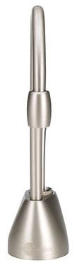 This dispenser provides near-boiling water on demand. It is made of durable brass and features a contemporary design suitable for various kitchen styles.