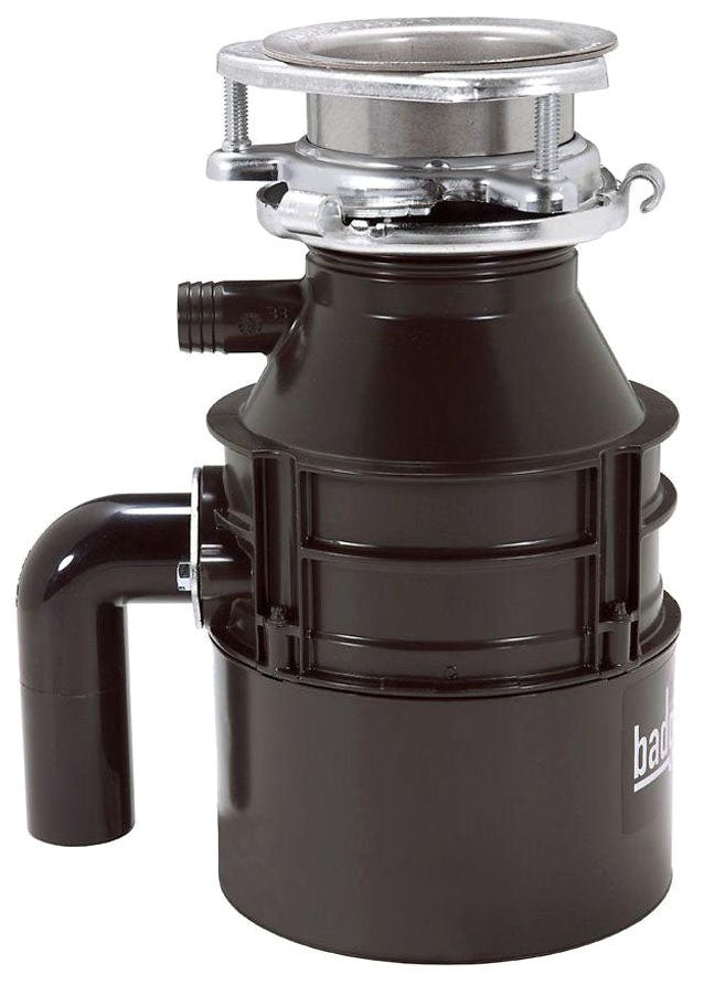 The Badger 1 disposal includes features for quiet operation. It is ideal for households where efficient waste disposal is a priority, allowing for the disposal of food scraps without blockage.