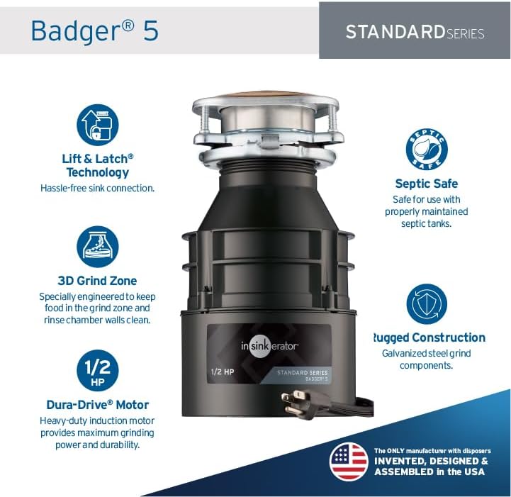 The InSinkErator Badger 5 with Power Cord is a reliable food waste disposer. It features a 1/2 horsepower motor designed for continuous feed. This model is perfect for managing kitchen scraps efficiently, making it a crucial addition to any home.