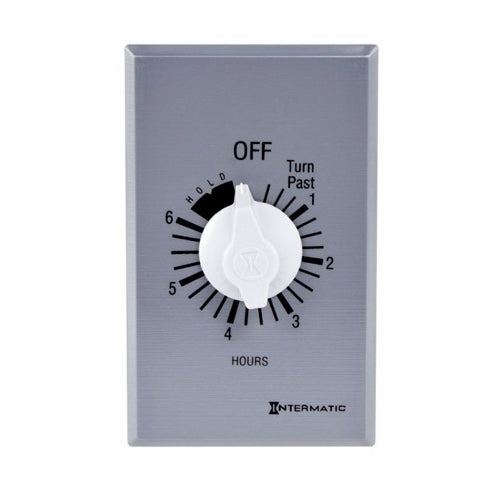 The Intermatic FF6HH is a robust commercial timer designed to automate the operation of fans, lighting, motors, and other energy-consuming loads. This timer, suitable for replacing any standard wall switch, offers a maximum duration of six hours and includes a hold feature for extended use.