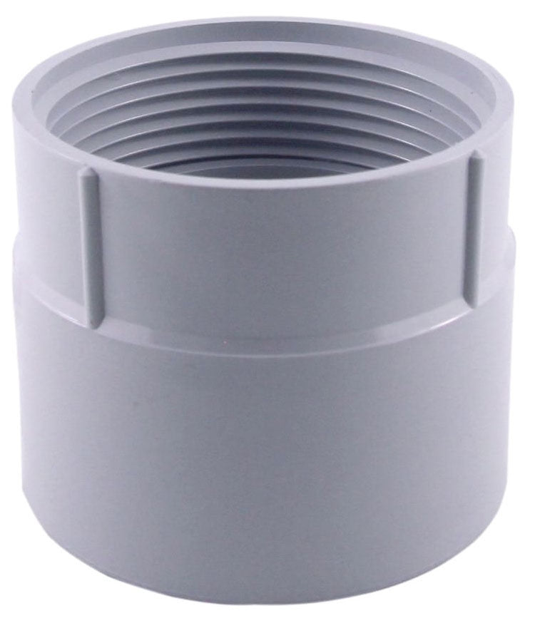 The IPEX 077047 is a two and a half inch PVC female adapter designed for connecting PVC conduit to a junction box or other threaded bodies. This adapter creates a secure watertight seal, effective in all weather conditions. It's ideal for electrical enclosure connections, ensuring a reliable and durable fit.