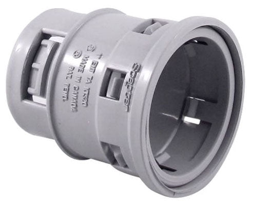 The Ipex KTS20, MPN 089148, is a one-inch PVC Kwikon snap-in male conduit adapter. This product provides a simple connection between electrical non-metallic conduit (ENT) and slab boxes with knockouts. Its design allows for a quick and effective installation in various wiring applications.