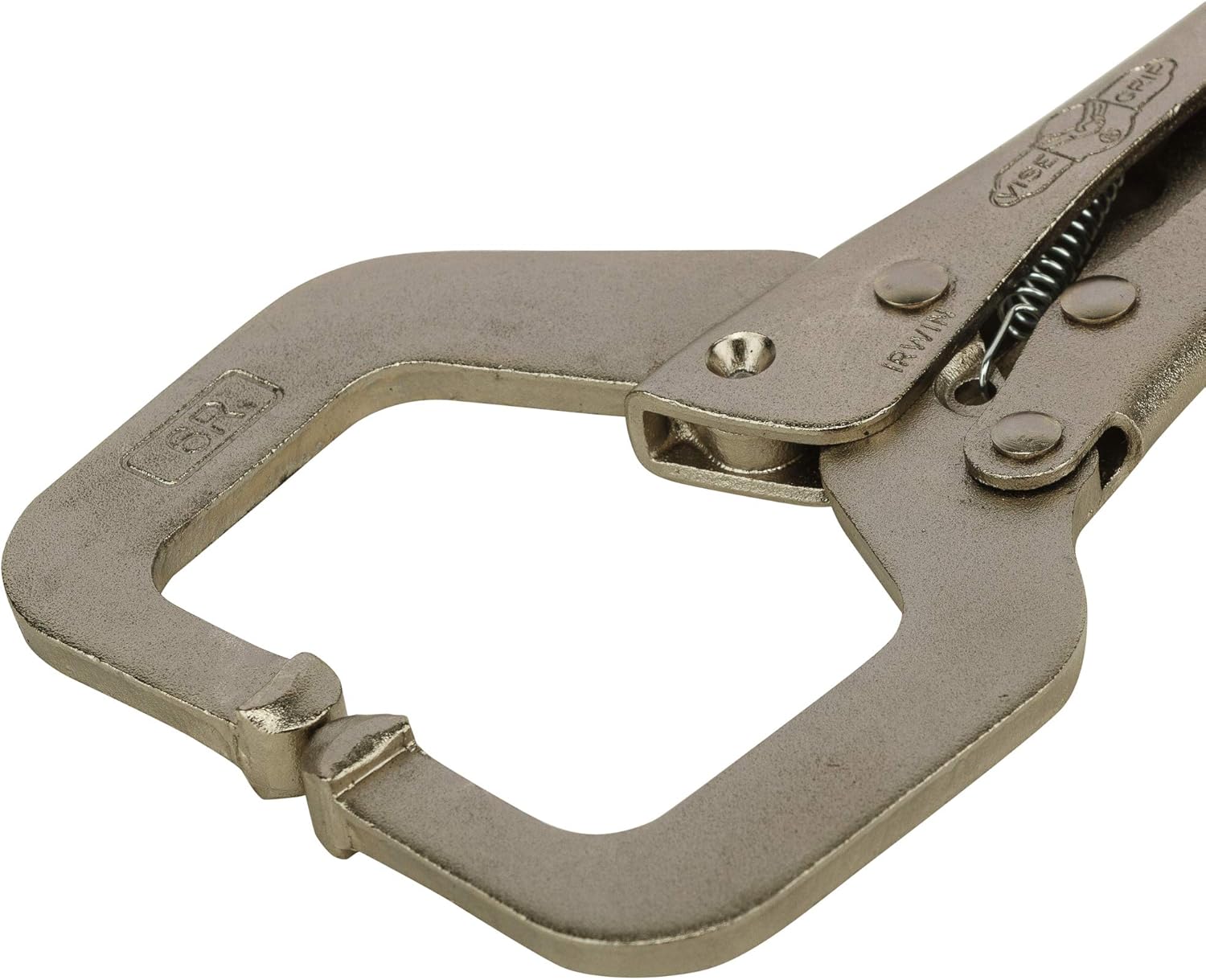 The IRWIN 17 Vise-Grip Locking C Clamp comes with a 6 inch opening. It has a jaw adjustment capacity of up to 2 inches. The throat depth is 1.5 inches. It is made of high-grade alloy steel. The clamp easily adjusts to the correct opening and locks with one hand for secure grip.