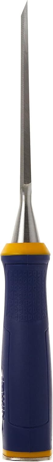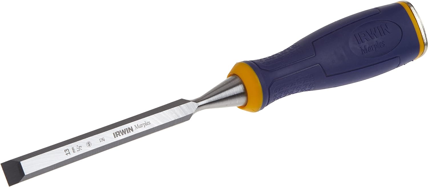 The IRWIN Tools Marples Construction Chisel, model 1768774, is designed for various woodworking applications. This bevel-edge chisel is one-half inch wide and includes a large strike cap that can withstand repetitive hammer blows. The ergonomic ProTouch Grip handle provides comfort and durability, ensuring it is ready for job-site conditions. The blade is made from high-carbon steel, known for its edge retention and sharpness.