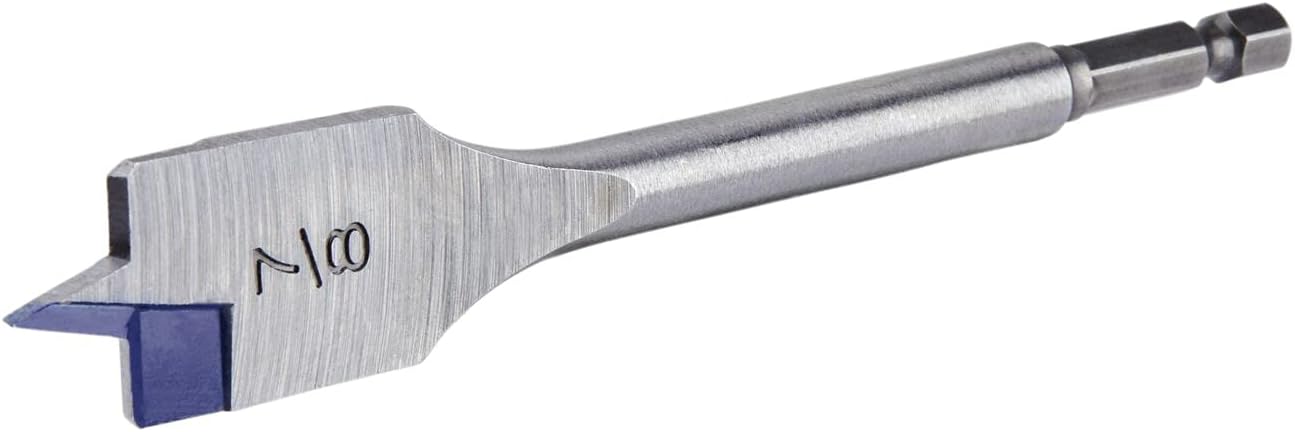 The Irwin 88814 Speedbor Spade Wood Drill Bit is robust and durable, making it ideal for heavy-duty drilling tasks. Its hex shank prevents slipping, ensuring a secure fit in the drill chuck. Perfect for professional and DIY projects alike.