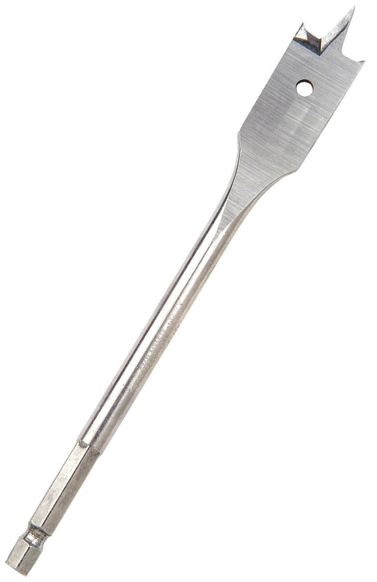 The Irwin Speedbor 88824 Drill Bit is designed for efficient wood drilling. The bit features a blue groove point and cutting edge that enable faster chip removal. The double cutting spurs help in reducing breakout. This drill bit has a grooved hex shank that prevents slipping in the drill chuck or bit extension and is compatible with all standard quick change chucks.