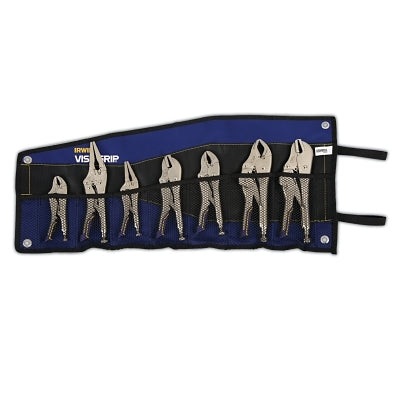 The IRWIN IRHT82595 Plier Lcking 7 Pc Fast Release Set is designed for various applications. This set includes a variety of locking pliers suited for clamping, twisting, and turning tasks. The maximum jaw opening measures two and seven-eighths inches, enabling versatile use. These pliers are crafted from heat-treated alloy steel for durability and long-lasting performance.