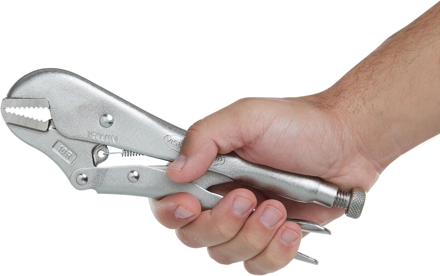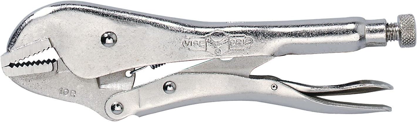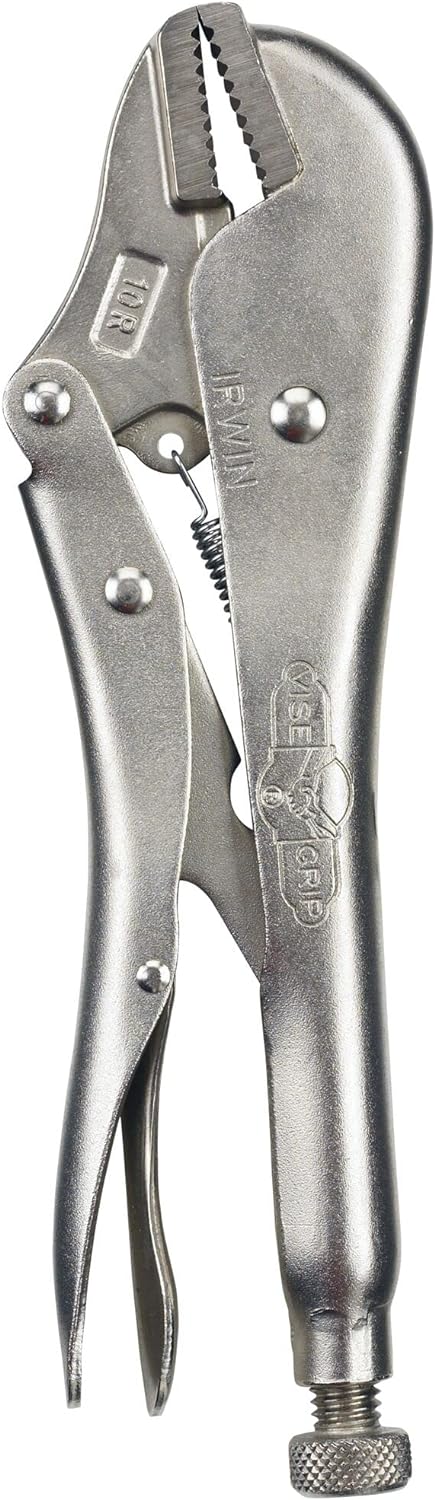 The IRWIN VISE-GRIP Original Locking Pliers, MPN 102L3, are designed for various applications like tightening, clamping, twisting, and turning. Built from high-grade heat-treated alloy steel, these pliers ensure maximum toughness and durability. The straight jaws provide maximum contact on flat, square, or hex work. The classic trigger release delivers maximum locking force, and the turn screw adjusts pressure for repetitive use.
