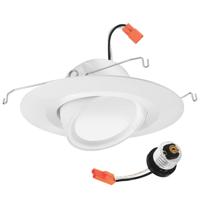The Juno RB56ASWW5MWM6 LED Adjustable Trim Kit is designed for both residential and light commercial use. This lighting solution features an adjustable gimbal, allowing for precise aiming and flexibility. The trim kit incorporates a tactile slider switch, enabling quick adjustments between five color temperature settings, from warm to cool light.