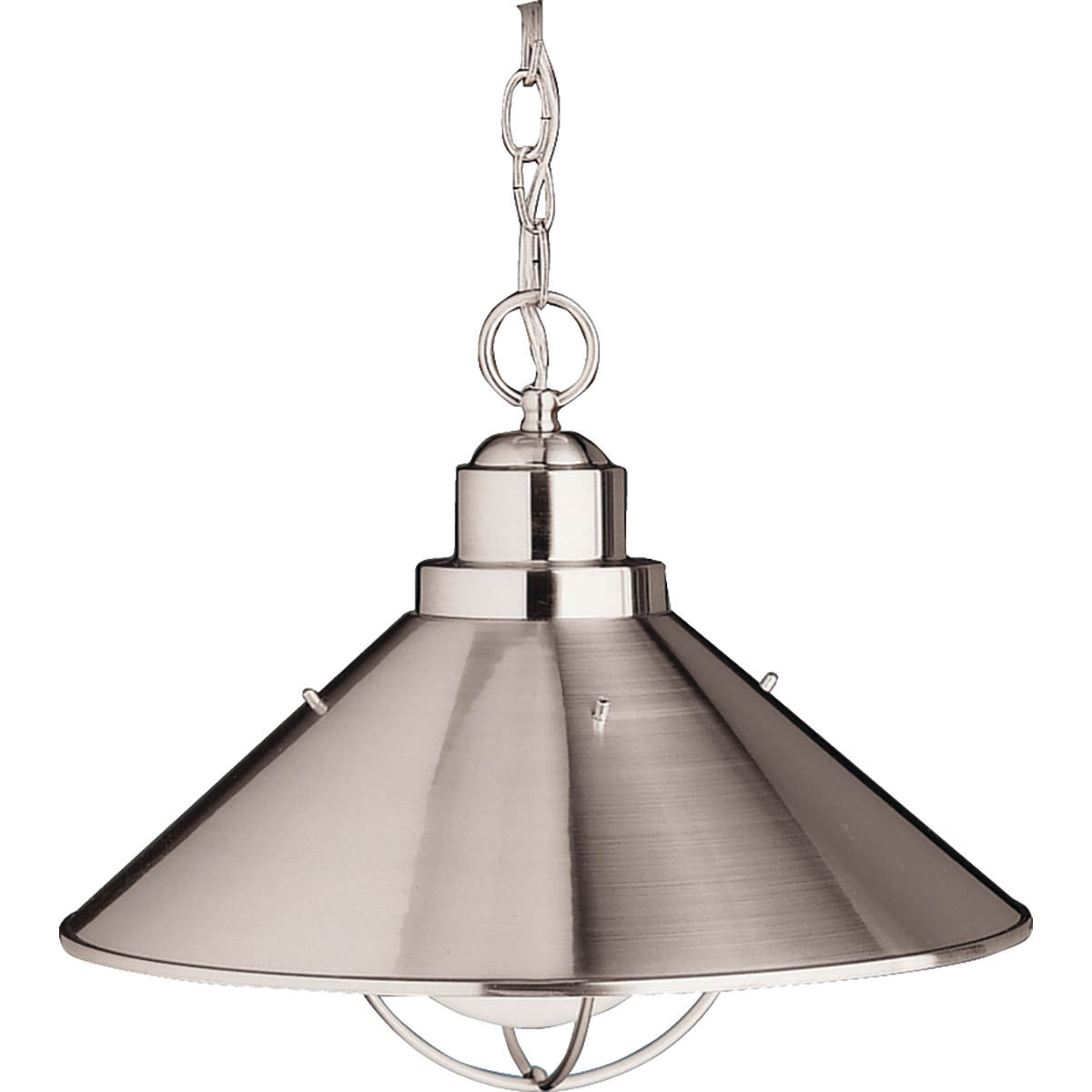 The Kichler 2713NI is a stylish outdoor pendant light designed for various outdoor areas. It comes with a brushed nickel finish and is UL listed for damp locations. This light fixture uses a maximum of 150-watt bulb for optimal illumination.