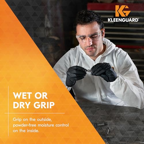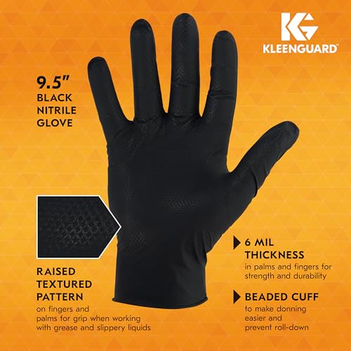 The Kleenguard 49277 Kraken Grip Fully Textured Black Nitrile Gloves are designed to offer superior protection and comfort across various industries. With a 6 mil thickness, these large-sized, powder-free gloves are ideal for sensitive tasks. Their fully textured surface ensures excellent grip in both wet and dry conditions.