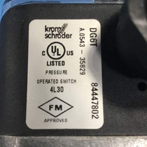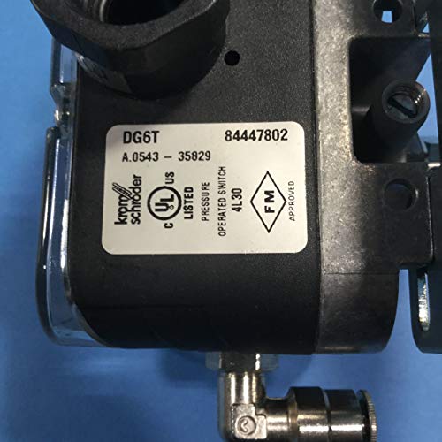 The Kromschroder 84447802 Pressure Switch DG 6T is designed to monitor positive air and gas pressures, as well as negative or differential air pressures. Featuring an adjustable range of 0.2 to 2.4 inches WC (0.5 to 6 mbar), this switch ensures accurate and repeatable switching action with low hysteresis.