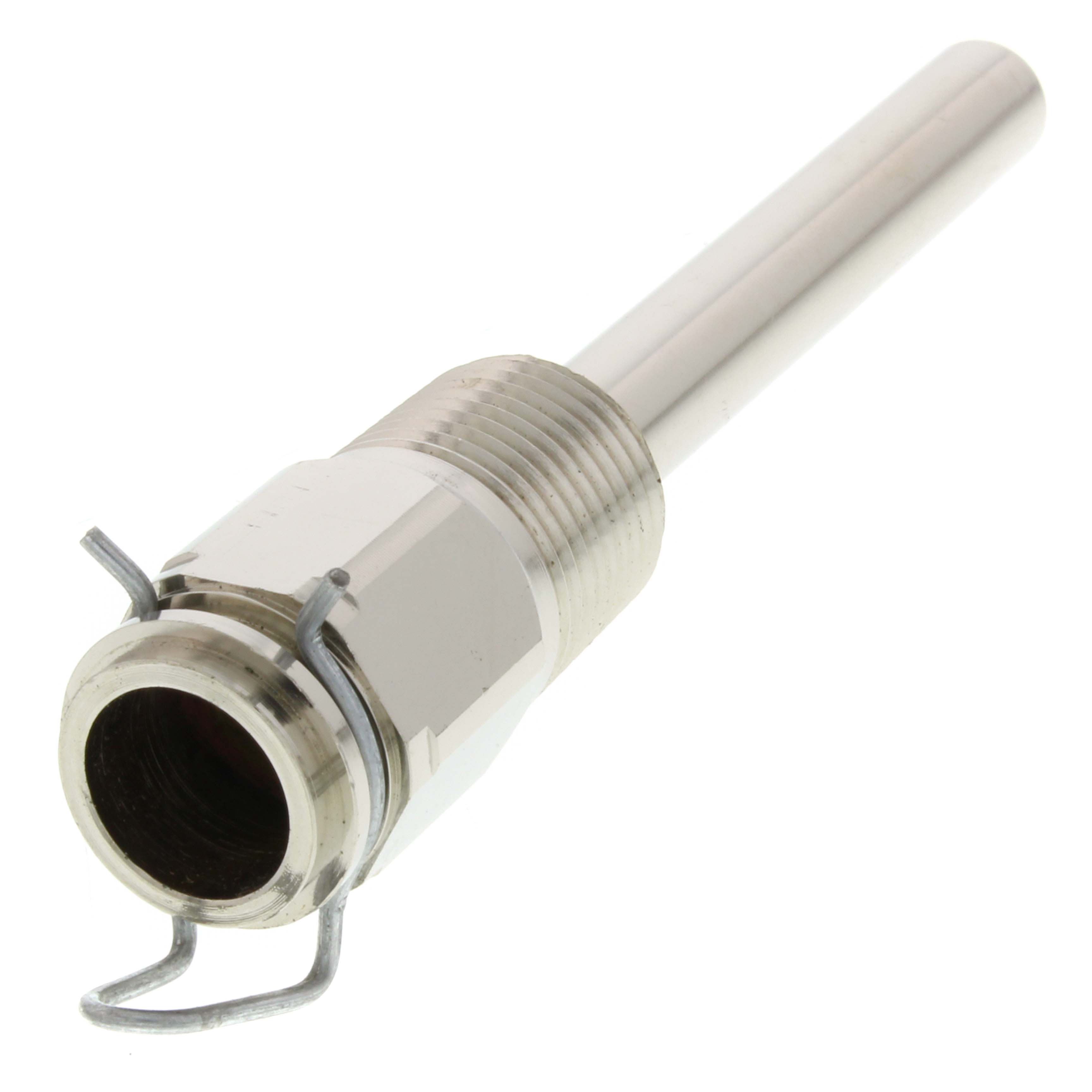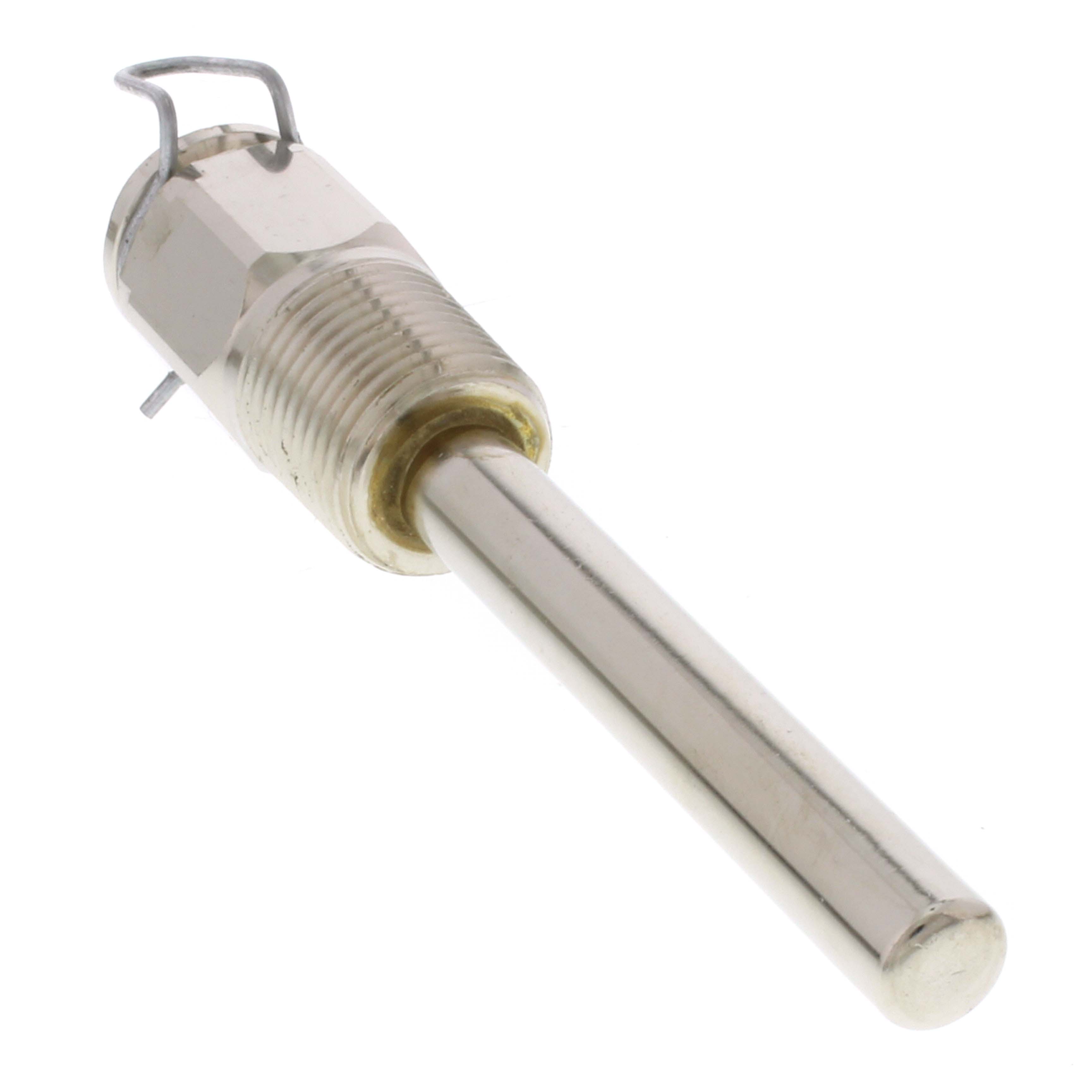 The Laars RE2058300 is a 1/2 inch NPT male aquastat well. This component is designed for use in various heating applications. It ensures proper temperature regulation in heating systems. The aquastat well features nickel plating for corrosion resistance.