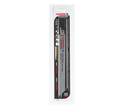 Lenox 10833 Reciprocating Saw Blade Bi-Metal Diamond is an 8 inches long blade with a 3/4 inches width, designed for cutting various materials. The diamond grit and chrome alloy steel construction guarantee durability and sharpness, making this blade suitable for trade professionals.