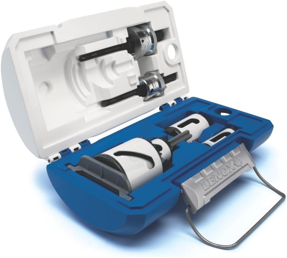 The Lenox 1815140 Tools Speed Slot Bi-Metal Hole Saw Kit is a 7-piece compact construction set designed for efficient cutting. This kit features improved metal cutting performance with increased wall thickness for enhanced durability. The optimized tooth design ensures easy penetration through metal.