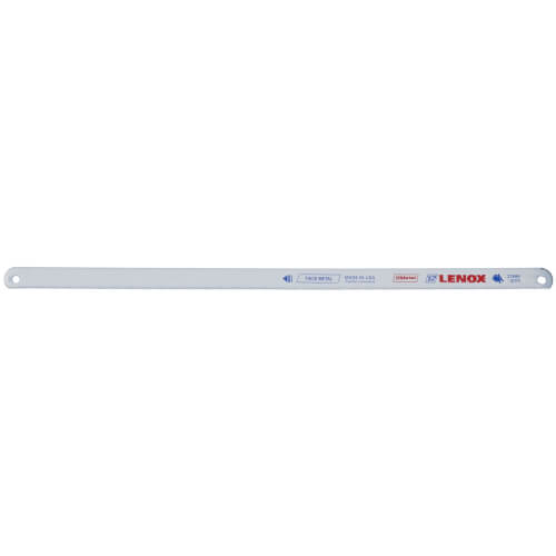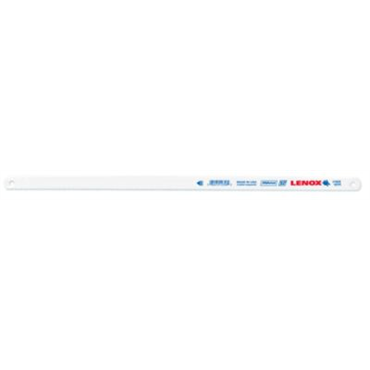 Lenox 20144V218HE is a twelve inch bi-metal hacksaw blade designed for durability and efficiency. This blade features T2 technology for enhanced longevity compared to earlier models. Its bi-metal construction allows it to bend and flex without breaking, making it ideal for various cutting applications.