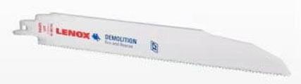 The Lenox 20373106R5 is a demolition bi-metal reciprocating saw blade designed for cutting through tough materials. This twelve-inch blade features six teeth per inch, making it suitable for various applications including metal and wood cutting. It combines durability with performance, suitable for demanding jobs.