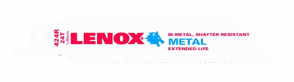 Lenox 20554424R is a four inch by three-fourths inch bi-metal reciprocating saw blade designed for effective cutting in metal. This product features advanced technologies to enhance its performance.
