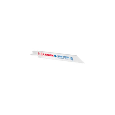 Lenox 20562610R is a bi-metal reciprocating saw blade designed for cutting various materials. It measures six inches in length, three-fourths of an inch in width, and features a thickness of zero point thirty-five inches. This blade includes ten teeth per inch (TPI), making it suitable for cutting metal, wood, and plastics effectively.