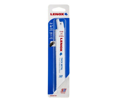 Lenox produces the 20564 reciprocating saw blade, designed for cutting various metals. This bi-metal blade measures six inches in length, with fourteen teeth per inch for efficient cutting. Available in a convenient pack of five, it is ideal for trade professionals needing reliable saw blades for tough jobs.
