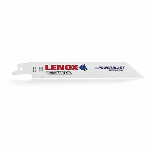 Lenox 22756OSB614R is a reciprocating saw blade designed for metal cutting applications. This blade measures six inches in length and three-quarters of an inch in width. The blade thickness is zero point zero three five inches with fourteen teeth per inch. The blade is made from bi-metal, which enhances durability and cutting performance.