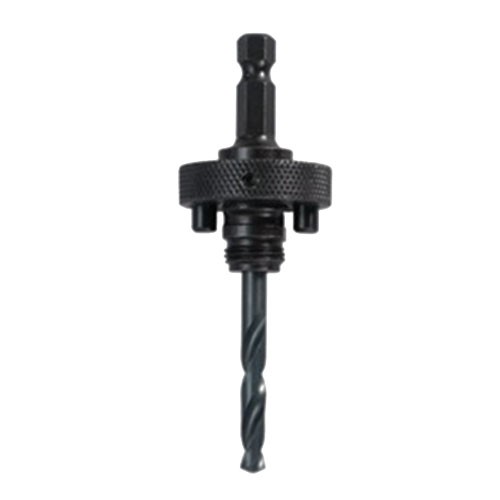 The Lenox 300044L is a 1/4 inch arbor and drill hex shank designed for use with hole saws. This tool is suitable for cutting through various materials, including wood and metal. It works with hole saw diameters between 9L and 19L and features a hardened carbon steel construction for durability.