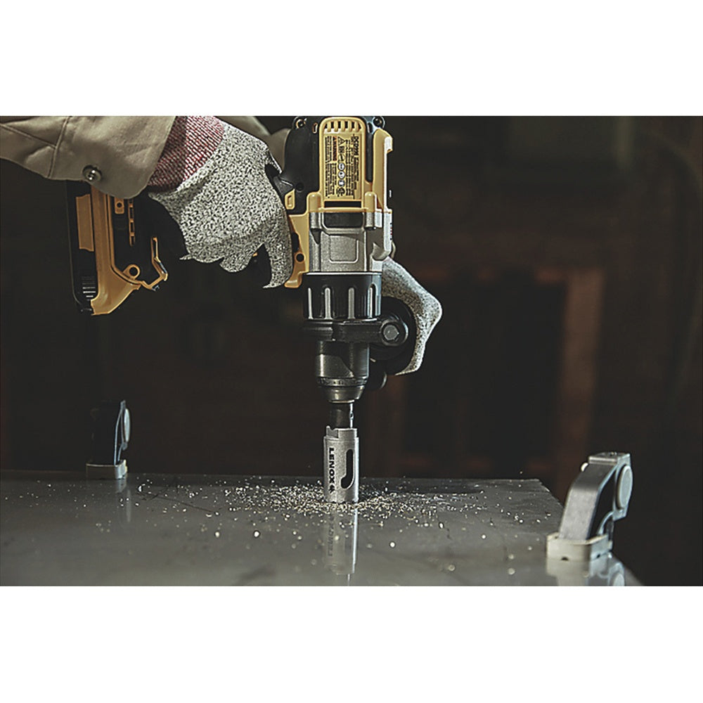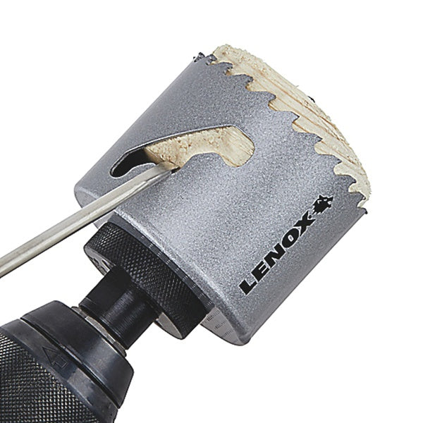 Lenox LXAH3118 is a carbide tipped hole saw designed for durability and versatility in cutting tasks. It effectively cuts through various materials including wood, steel, stainless steel, cast iron, fiber cement, and plaster. This hole saw offers up to fifty times the life compared to traditional bi-metal hole saws when cutting through cast iron.