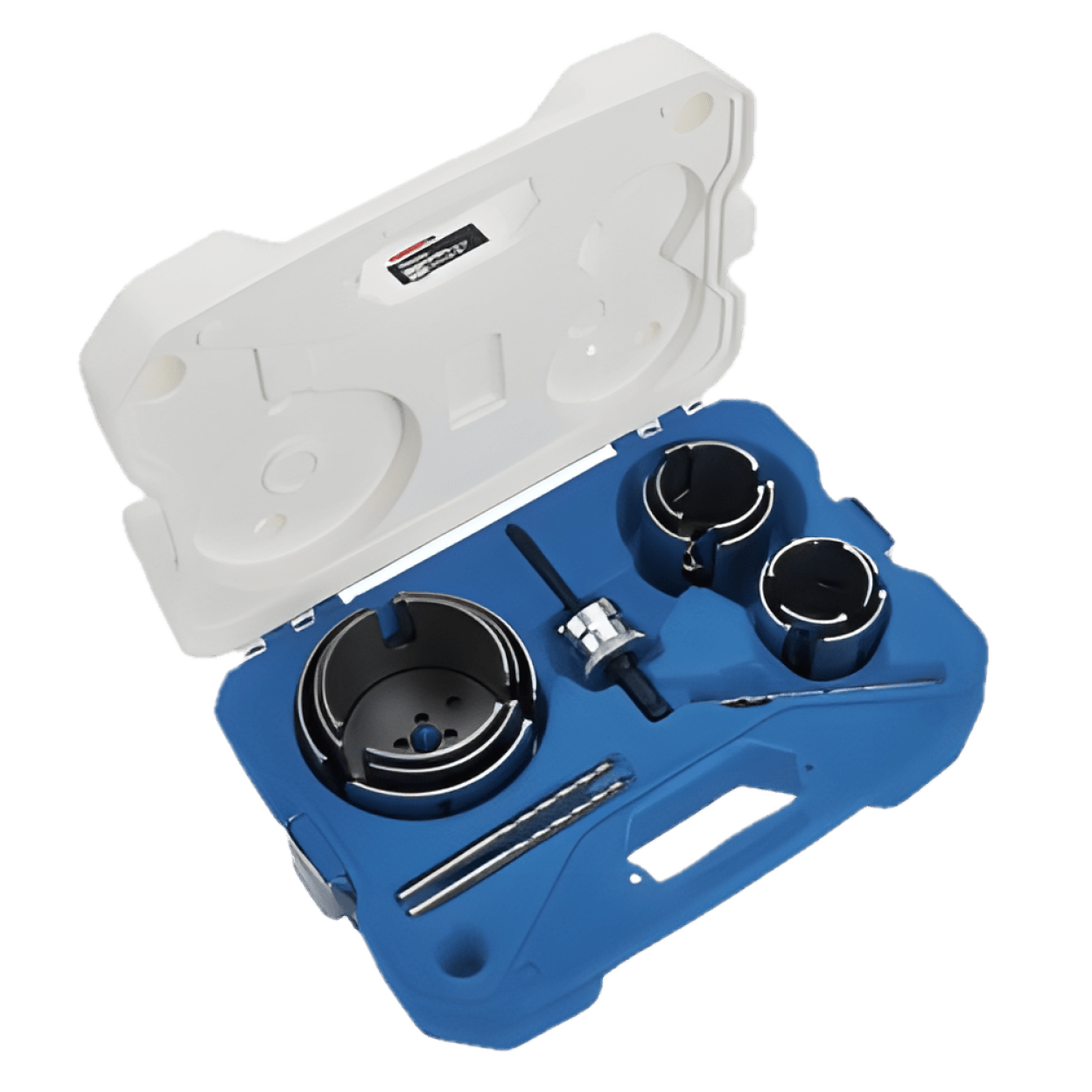 The Lenox LXAH411SET is a carbide hole saw set designed for enhanced drilling performance. This set includes eleven pieces and is suitable for various materials such as wood and concrete.