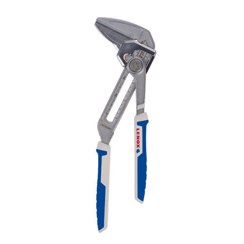 The Lenox Pliers Wrench, model LXHT90540, is designed for plumbing tasks. With a jaw capacity of three inches, it is suitable for various plumbing fixtures, including flush valves. The smooth jaws prevent damage to the fixtures during operation. The chrome finish resists rust and corrosion, ensuring durability.