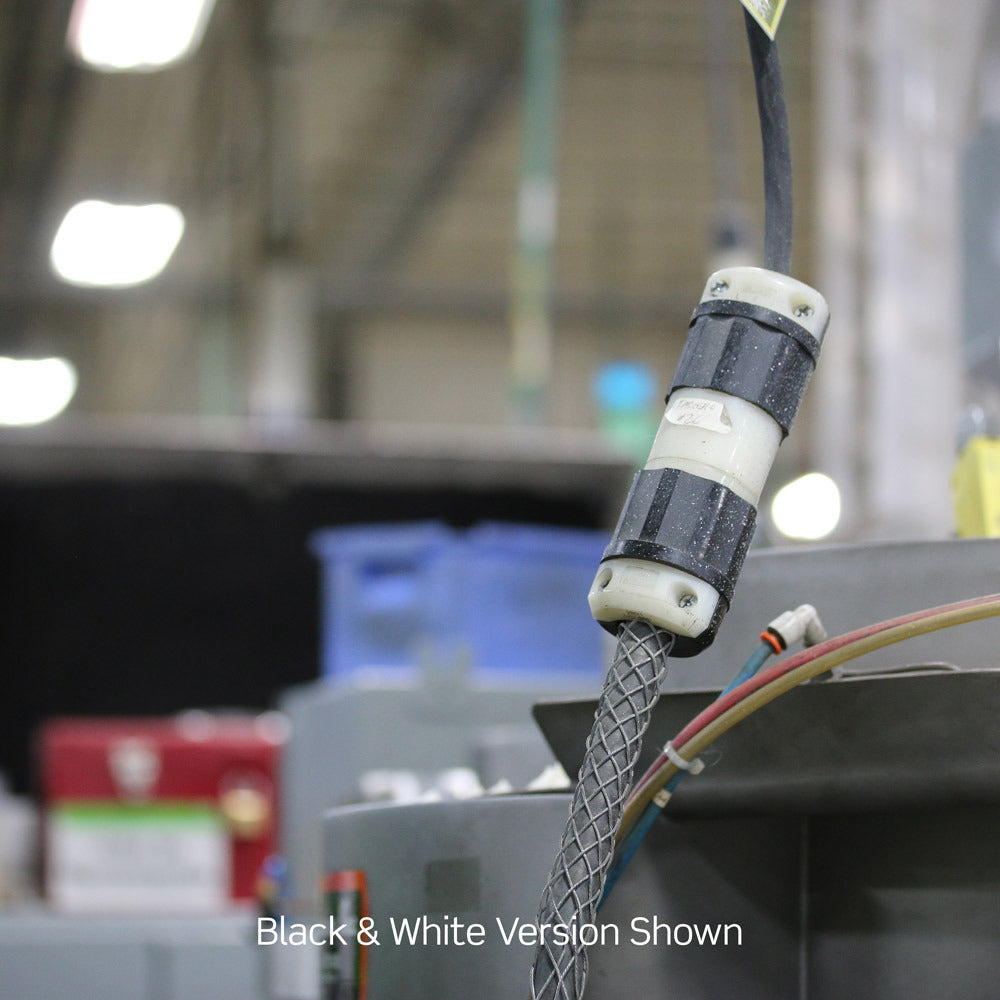 This locking plug provides secure connections for power applications and is suitable for cords ranging from zero point three eight five to zero point seven eight inches in diameter. Its rugged construction makes it resistant to impact and chemicals, ensuring reliability.